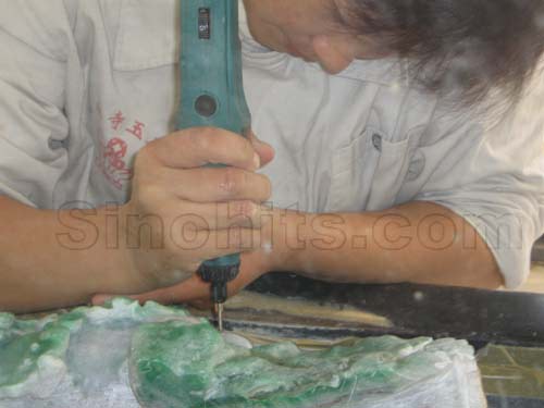 Without processing, jade could look no different from common stone, but the seasoned craftsman can tell whether a piece of stone contains jade in it. However, making the stone to the wanted shape is no easy job. It is no surprise that some fancy works may take years to finish.