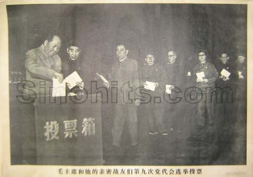 Chairman Mao and his intimate comrades-in-arms voting in the Ninth Representative Conference of CPC (Communist Party of China)