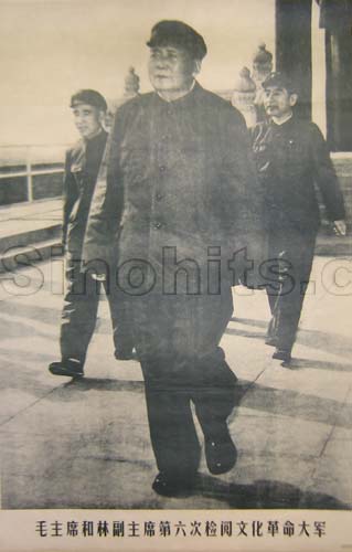 Chairman Mao and Vice Chairman Lin inspecting the cultural revolution army for the sixth time