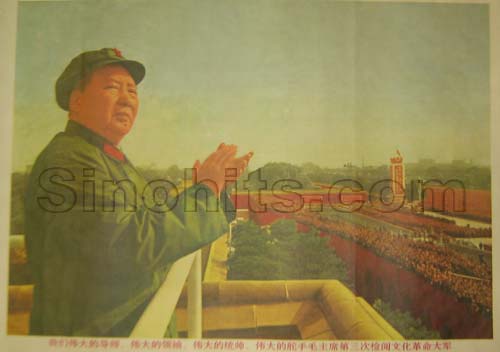 Our great mentor, great leader, great commander-in-chief, great helmsman Chairman Mao inspecting cultural revolution army for the third time