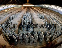 The terra-cotta warriors and horses, located in Lintong District, Xi¡¯an of Northwest China¡¯s Shaanxi Province, are a large set of well-organized life-size pottery soldiers and horses buried underground escorting the Qin Shihuang Mausoleum.
